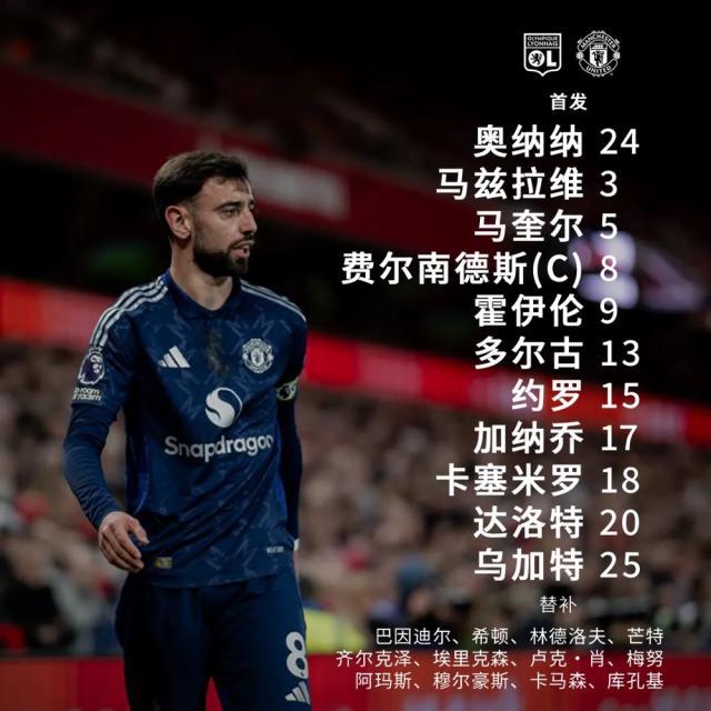 下半场,红魔攻势愈发猛烈,B费传中助攻齐尔克泽头球破门。但终场前被对手补时扳平。全场比赛结束,红魔2-2战平里昂。